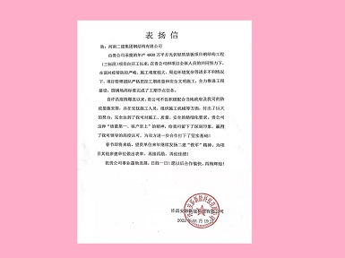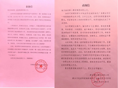 112022.02新乡建工建设有限公司和河南新飞智家科技有限公司向好博官方网页版_好博(中国)发来表扬信 -
