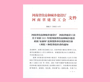 272022.01好博官方网页版_好博(中国)焊工班组荣获“2021年度河南省住房和城乡建设系统‘安康杯’竞赛优胜班组”称号 -